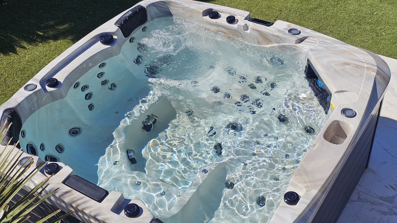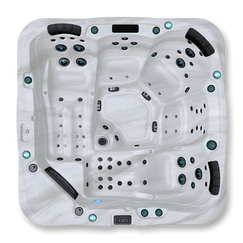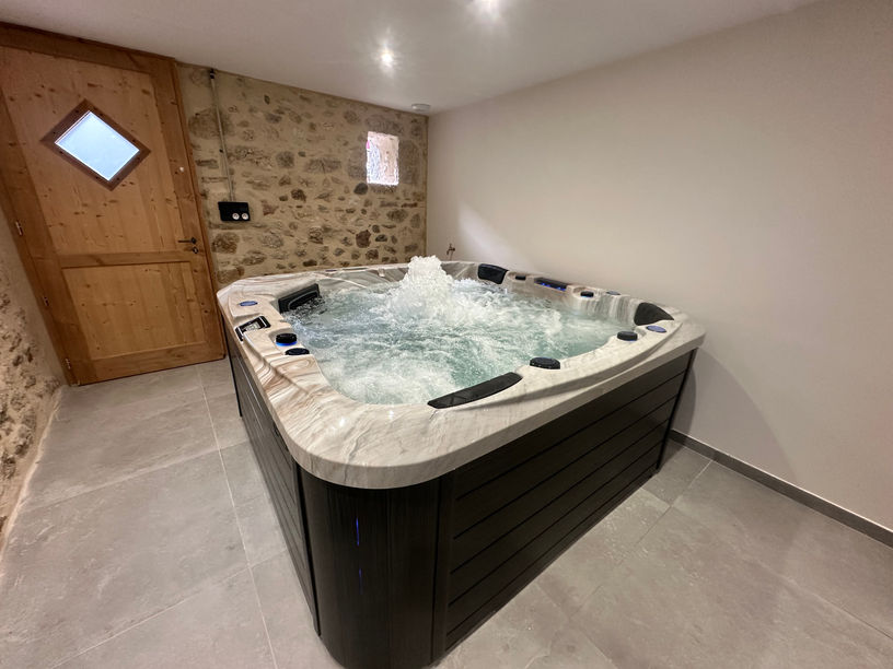 The P584 shares the same dimensions as the O575 and its capacity for 5 seats, including 2 reclining seats, but features 9 additional jets for a more complete and personalized massage. Equipped with three 3-hp pumps and a 1-hp blower, it offers exceptional power. The Vulcano jet, popular with athletes, precisely targets the thighs, lower back, shoulders, and abdominal area, with a diverter valve for finely adjusting the power. The P584 is an evolution of the O575, for those who want more massage options in the same dimensions.