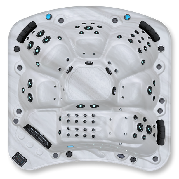La ligne d'eau DEL souligne les courbes raffinées du spa. Le E680 redéfinit le confort en proposant un clavier de contrôle indépendant sur la chaise longue, vous donnant la maîtrise totale de votre massage sans quitter votre position de relaxation.